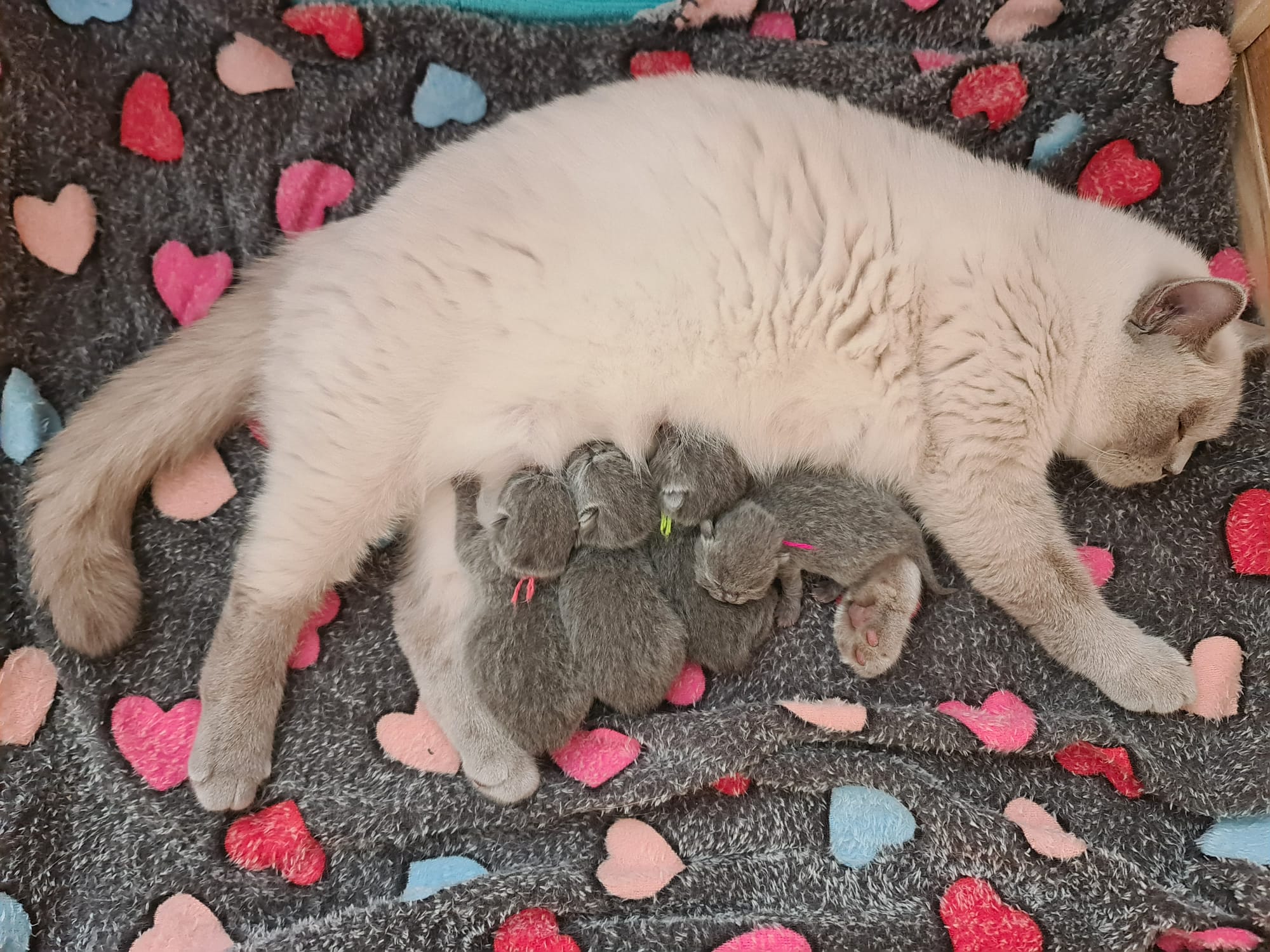 Op 24 April 2023 zijn van dit prachtige koppel vier schattige Britse Korthaar kittens in de kleur blauw geboren.