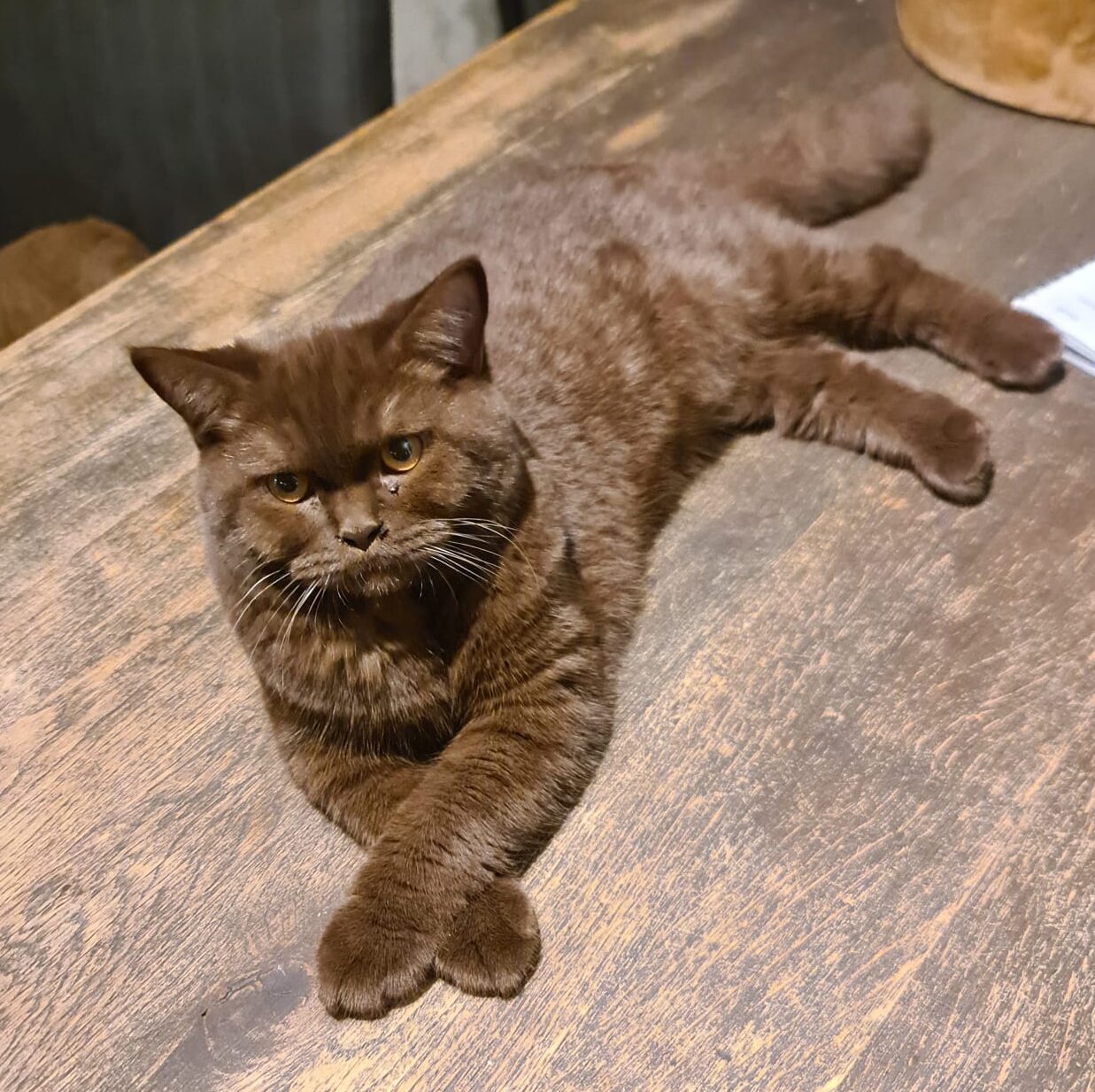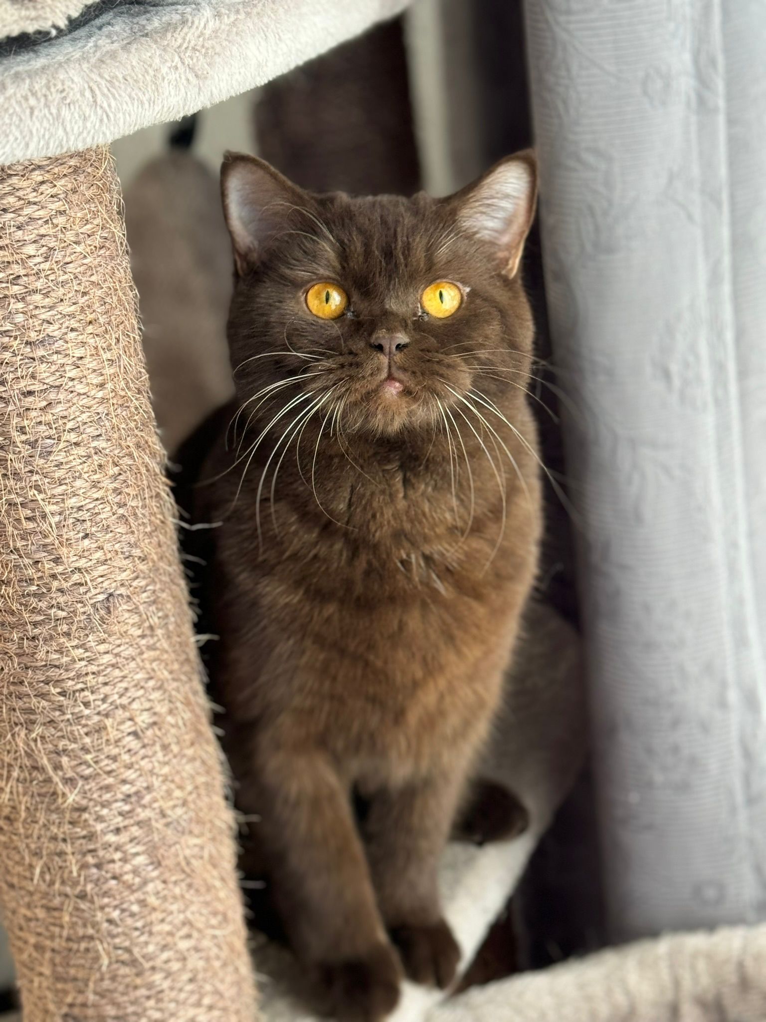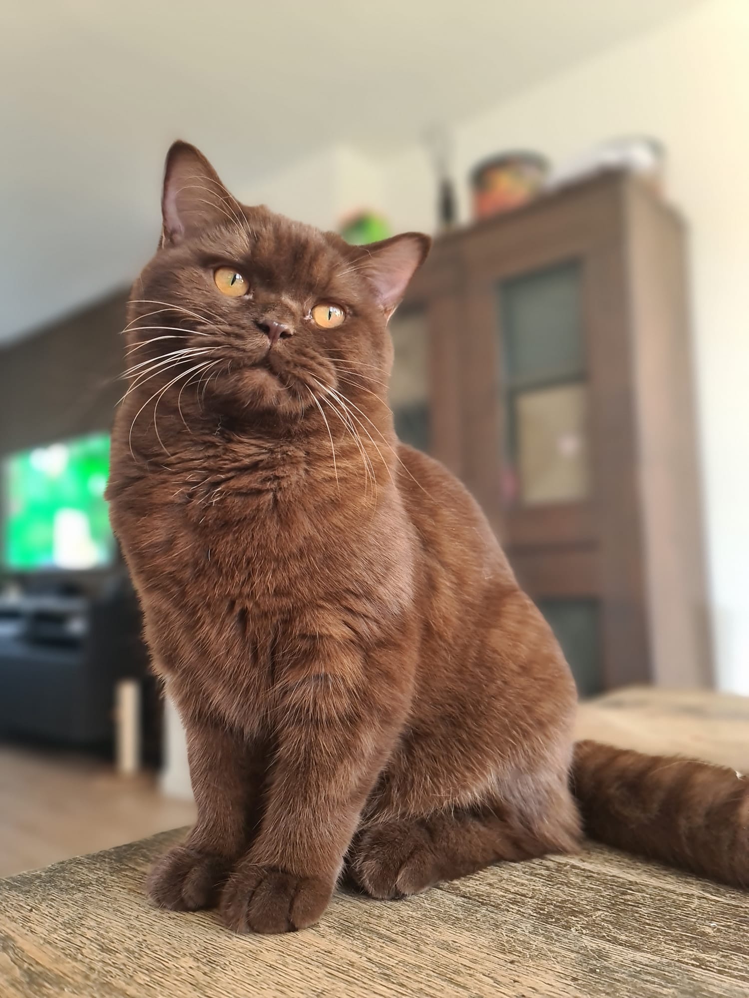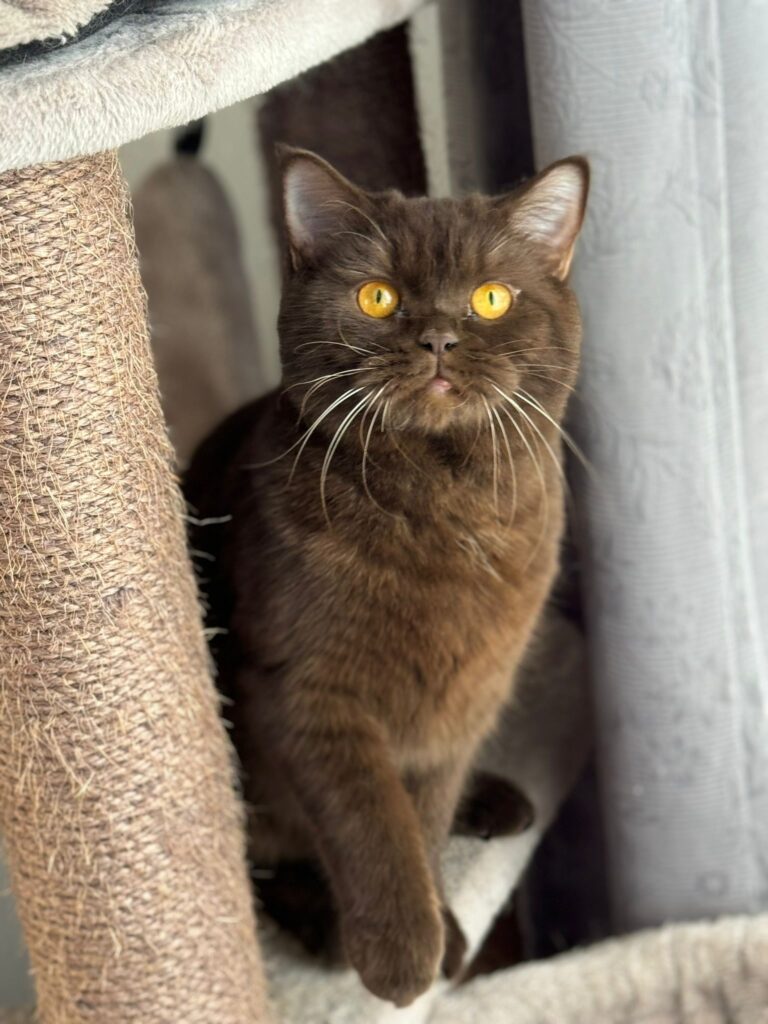 Ze is een zeer mooie kat met een kalme en zelfverzekerde uitstraling. Fiona heeft al meerdere keren meegedaan aan kattenshows, waar ze keer op keer positieve feedback heeft ontvangen voor haar prachtige vacht en stevige bouw. Haar kleur, het diepe chocoladebruin, valt altijd op, en haar aanwezigheid is altijd een blikvanger.