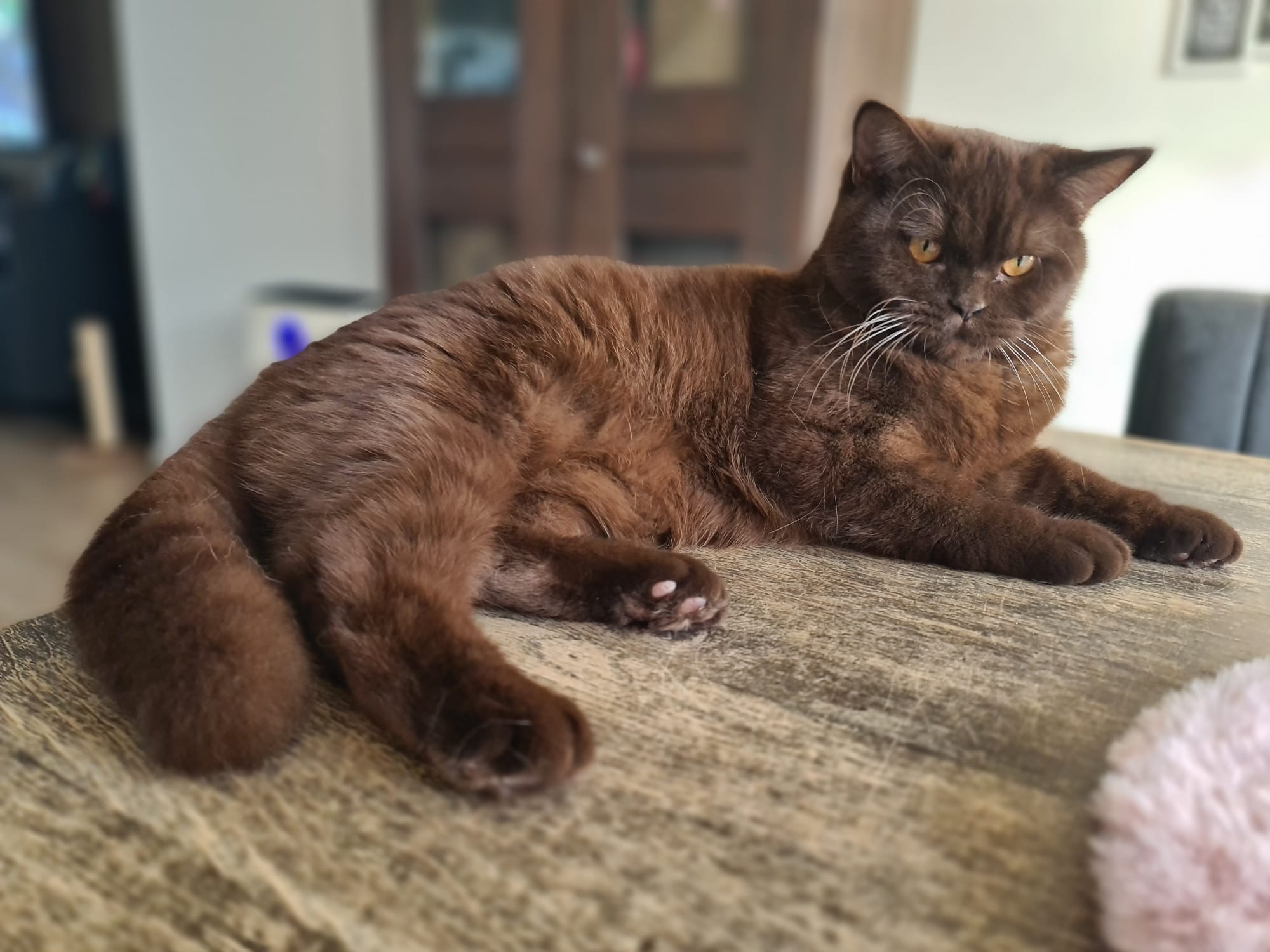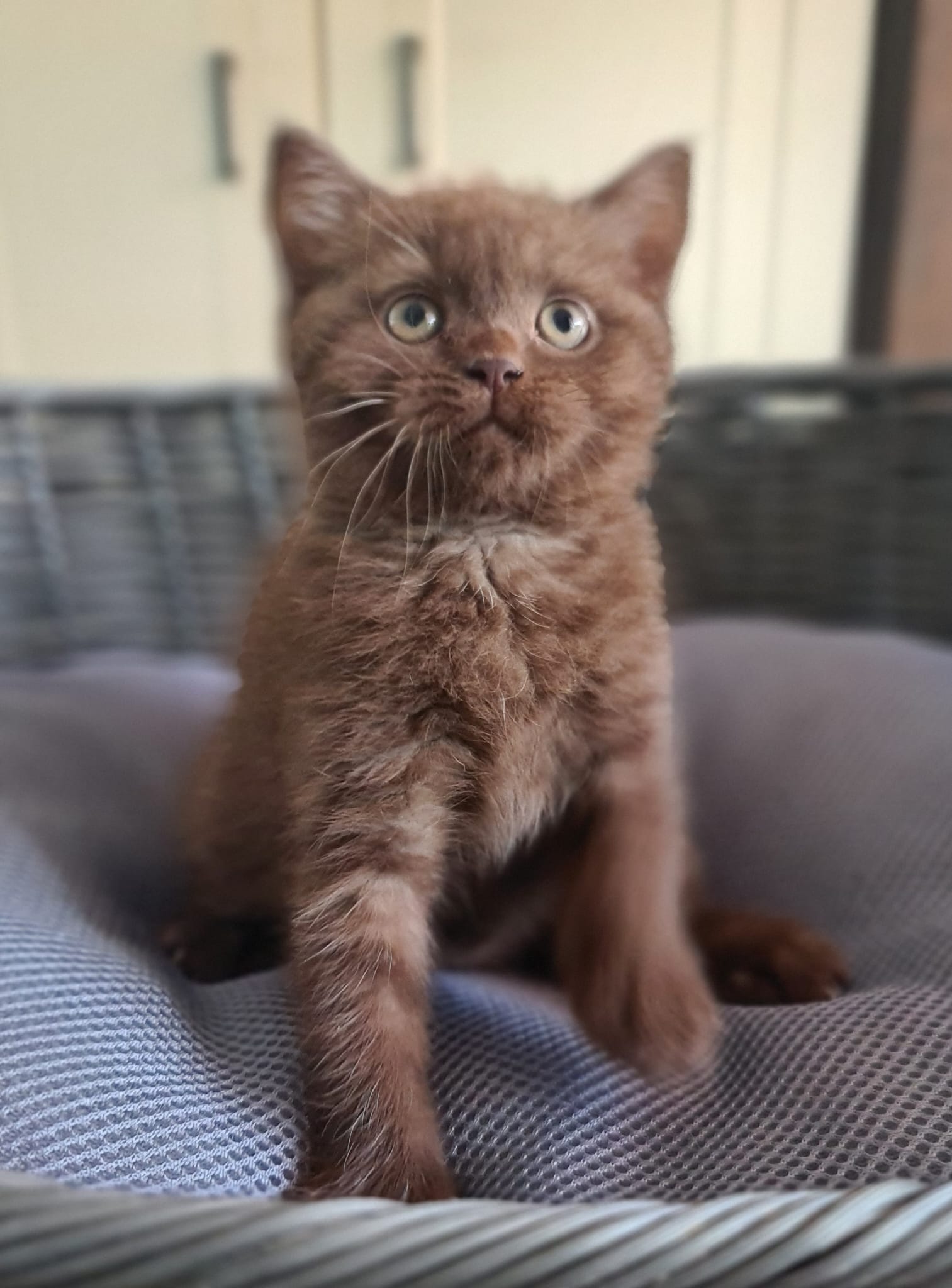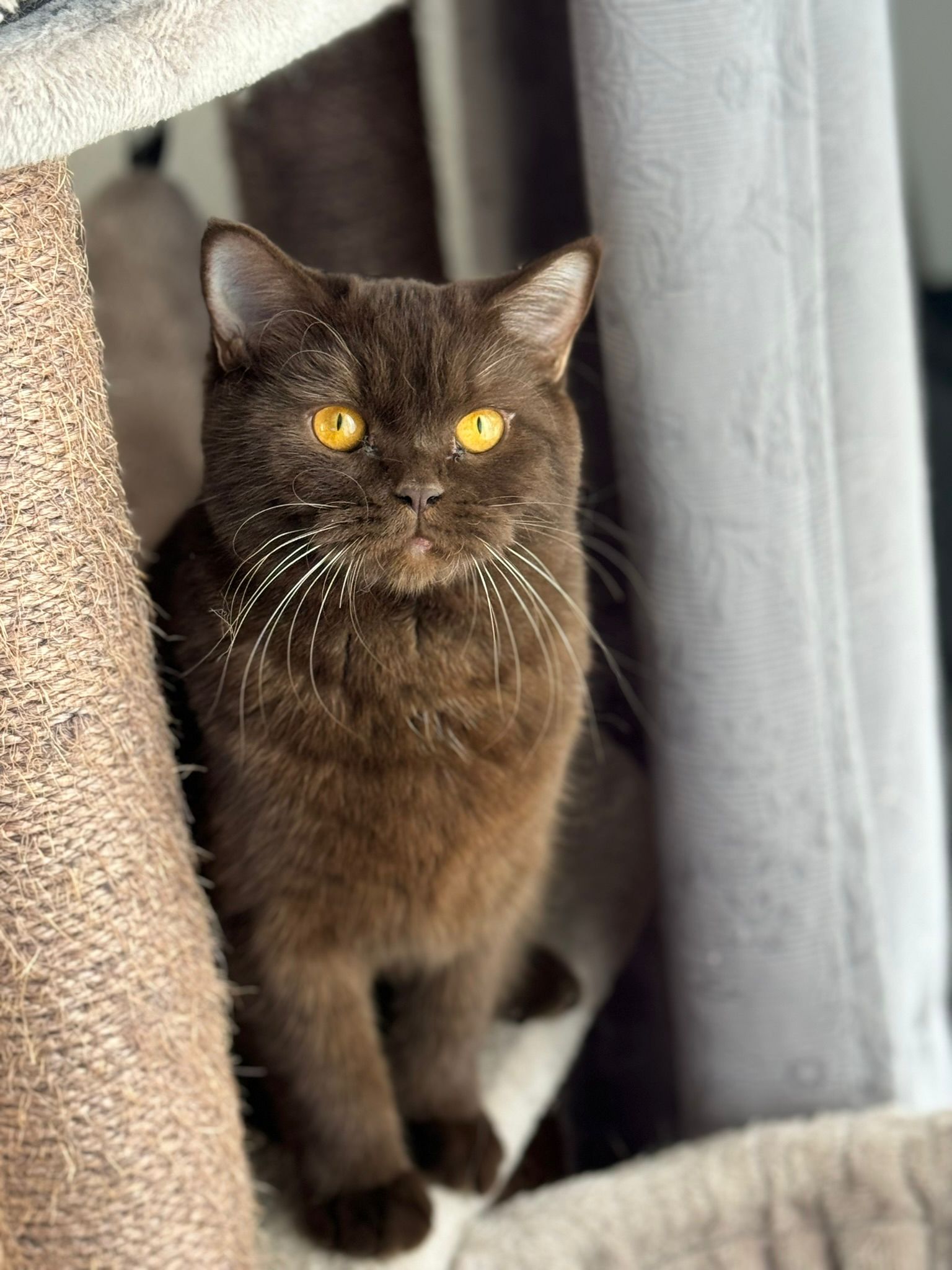 Ze is een zeer mooie kat met een kalme en zelfverzekerde uitstraling. Fiona heeft al meerdere keren meegedaan aan kattenshows, waar ze keer op keer positieve feedback heeft ontvangen voor haar prachtige vacht en stevige bouw. Haar kleur, het diepe chocoladebruin, valt altijd op, en haar aanwezigheid is altijd een blikvanger.