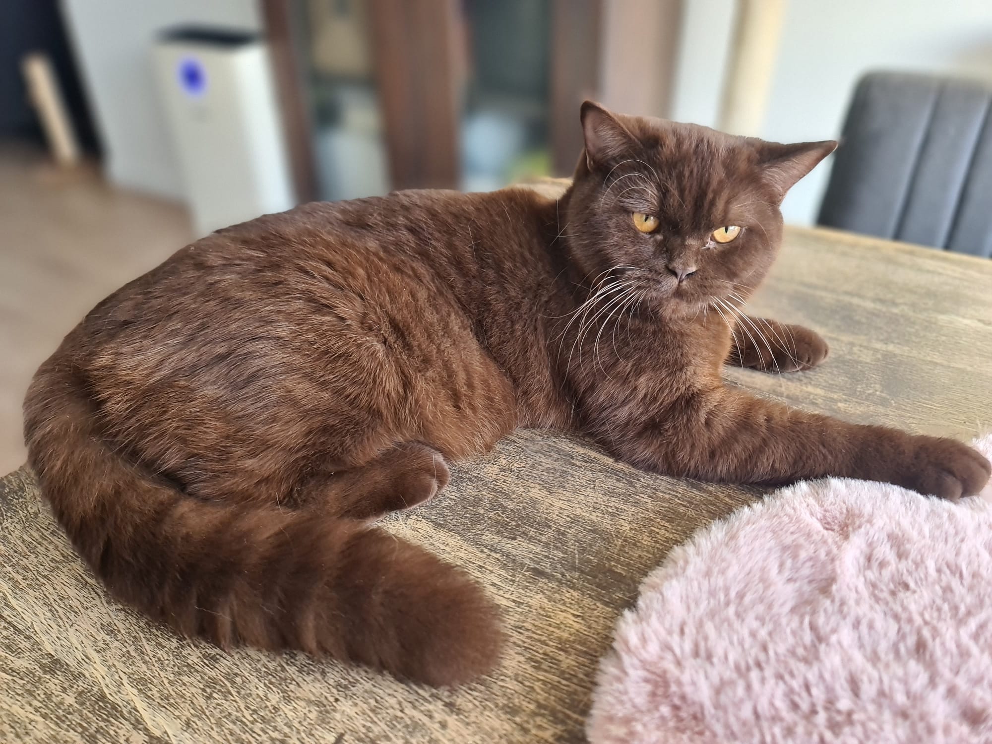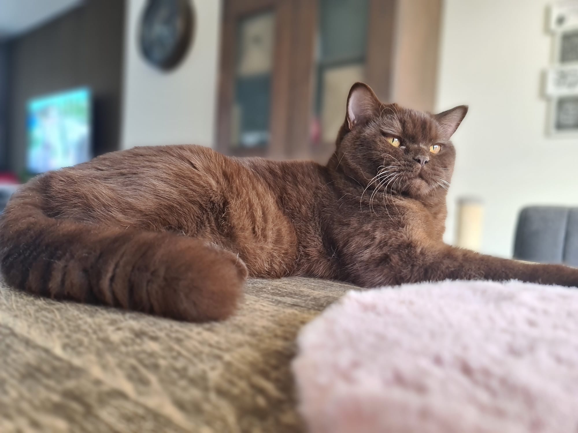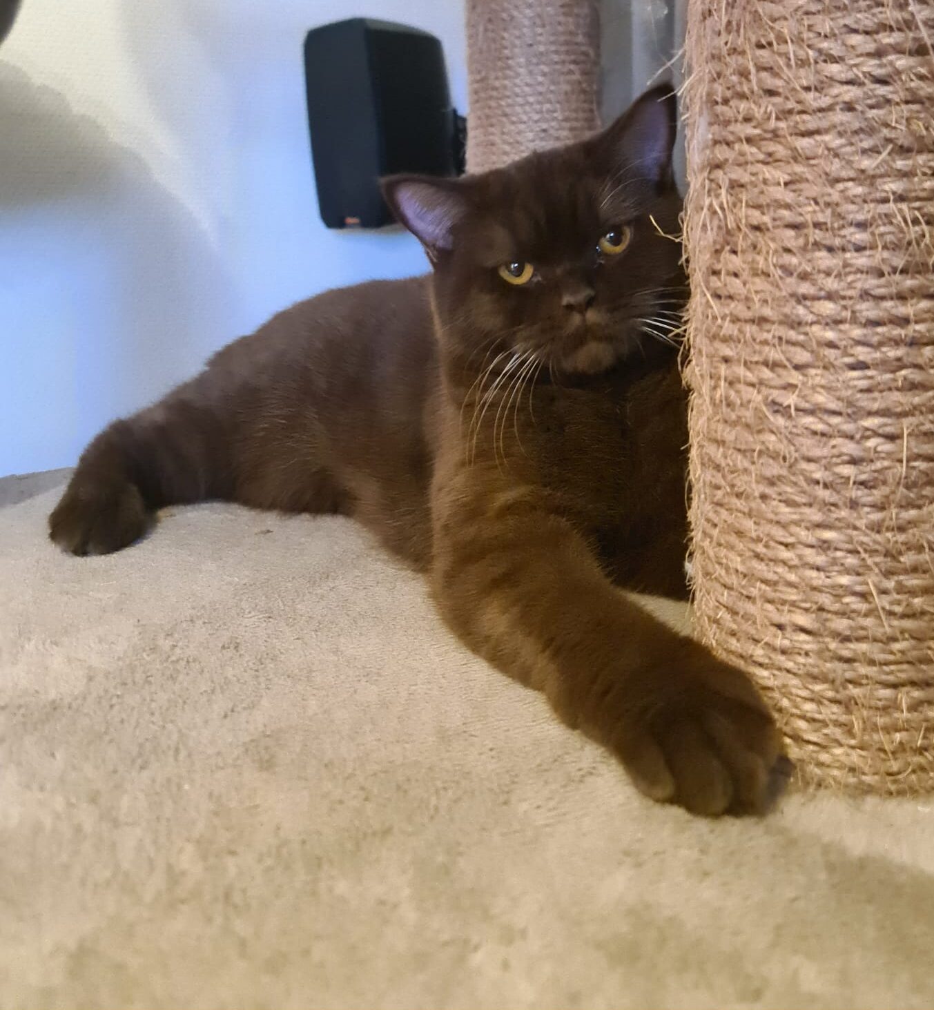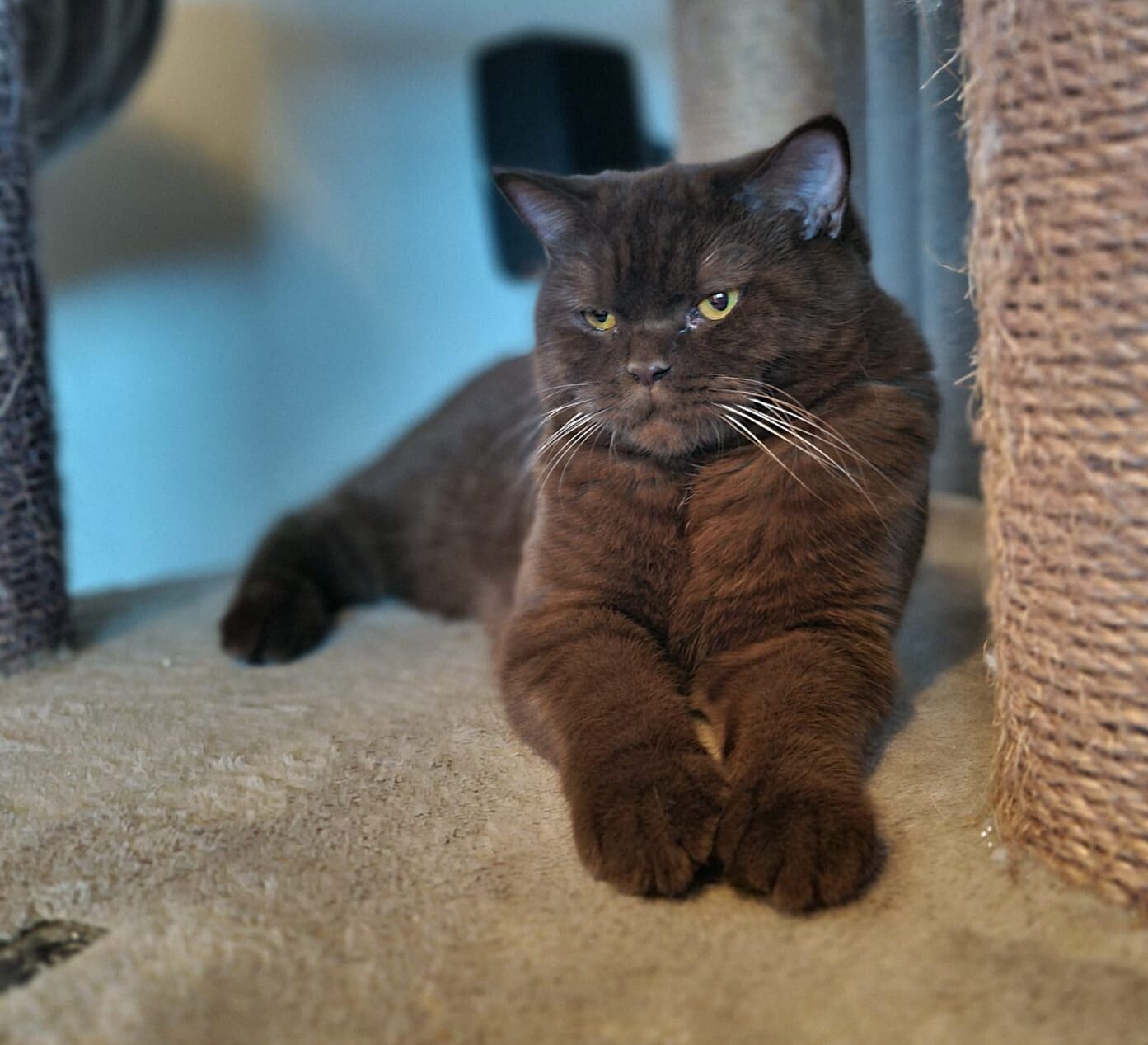 Ze is een zeer mooie kat met een kalme en zelfverzekerde uitstraling. Fiona heeft al meerdere keren meegedaan aan kattenshows, waar ze keer op keer positieve feedback heeft ontvangen voor haar prachtige vacht en stevige bouw. Haar kleur, het diepe chocoladebruin, valt altijd op, en haar aanwezigheid is altijd een blikvanger.
