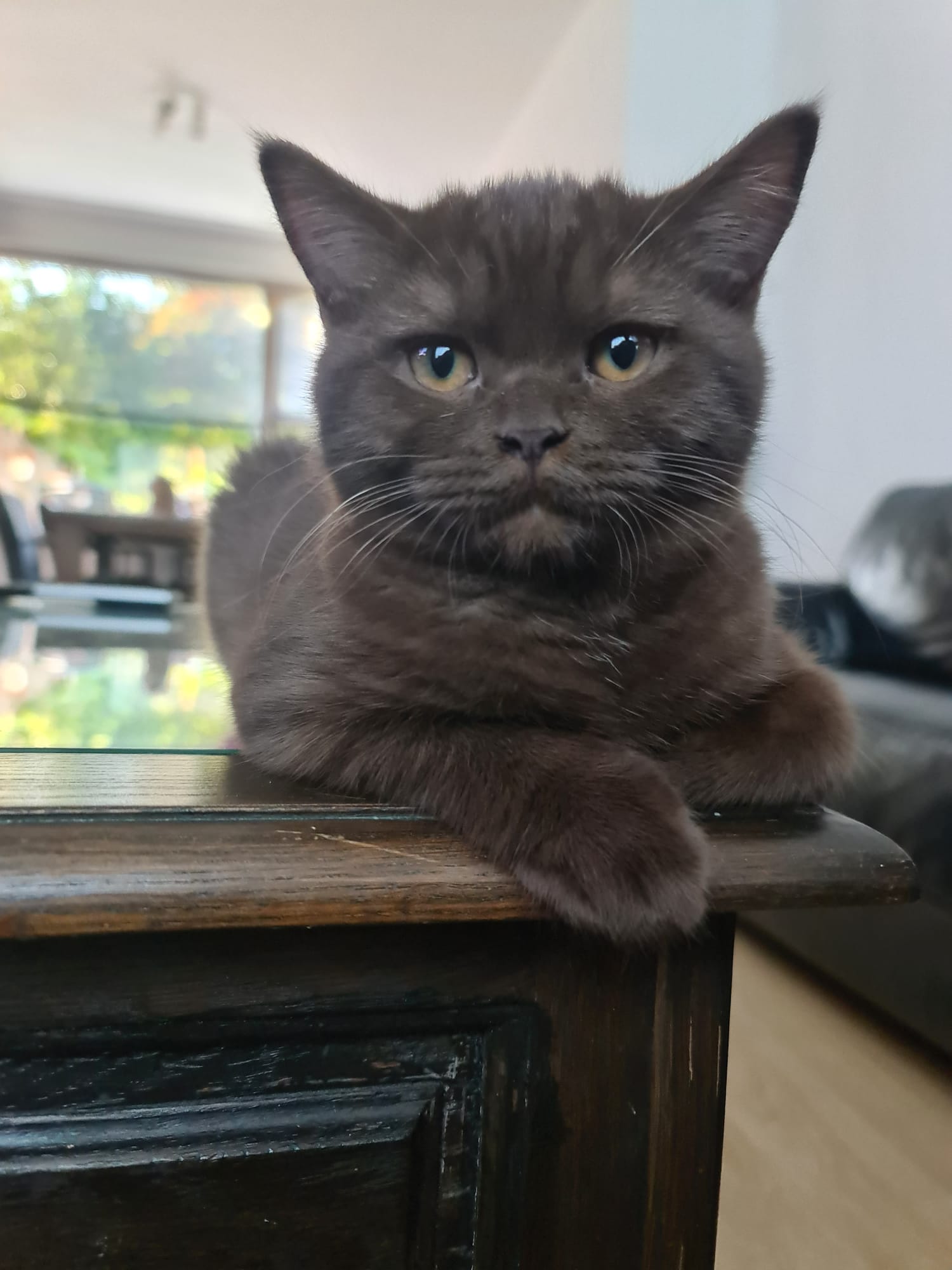 Fiona is een indrukwekkende chocolate Britse Korthaar met een stevig en robuust postuur. Ze is de dochter van onze Marabella en Simba, beide kampioenen die afkomstig zijn uit uitstekende showlijnen, rijk aan succesvolle showkatten. Haar ouders staan bekend om hun ronde, chubby lichaamsbouw, en Fiona heeft deze eigenschappen duidelijk geërfd.