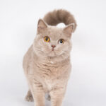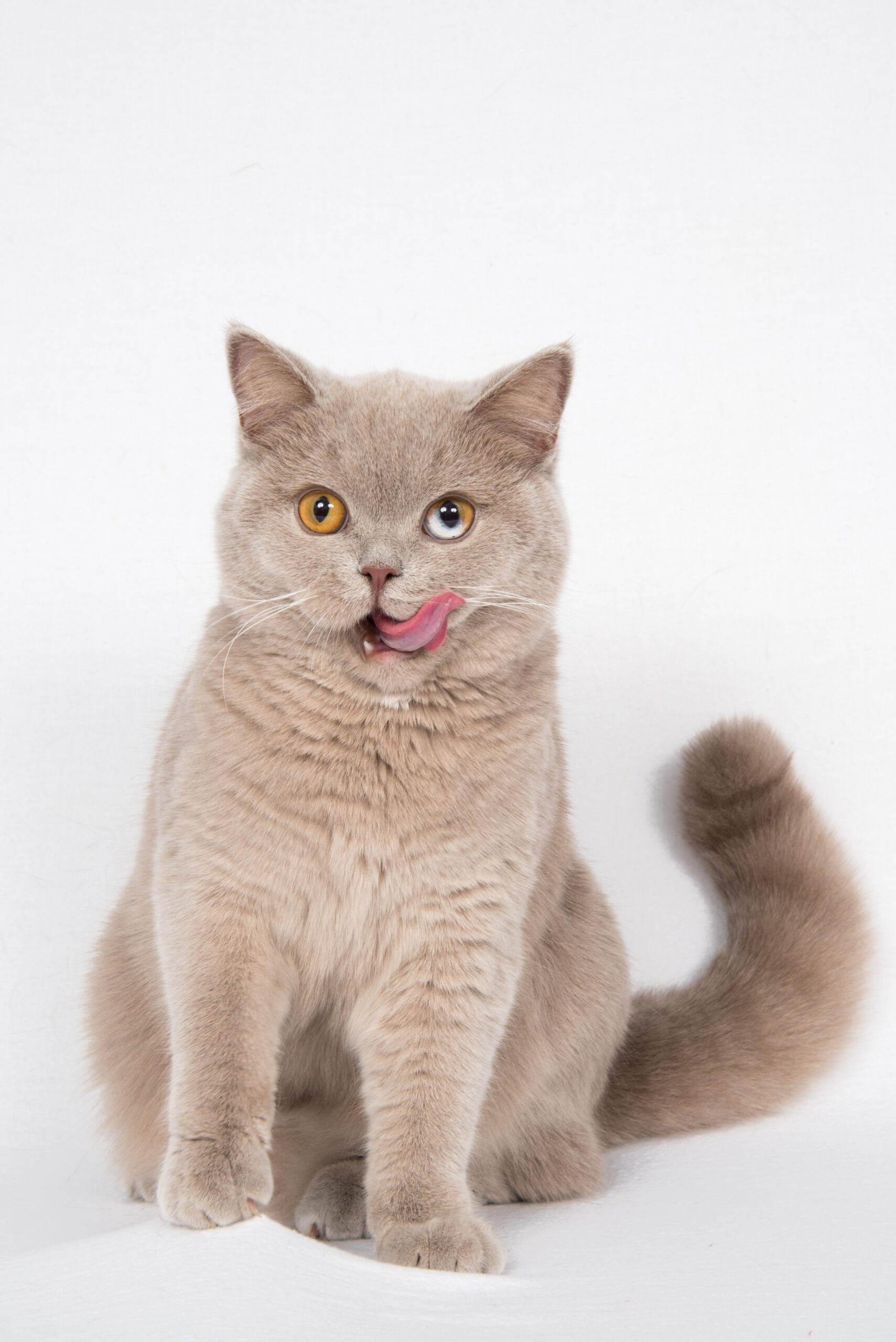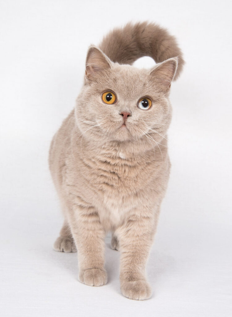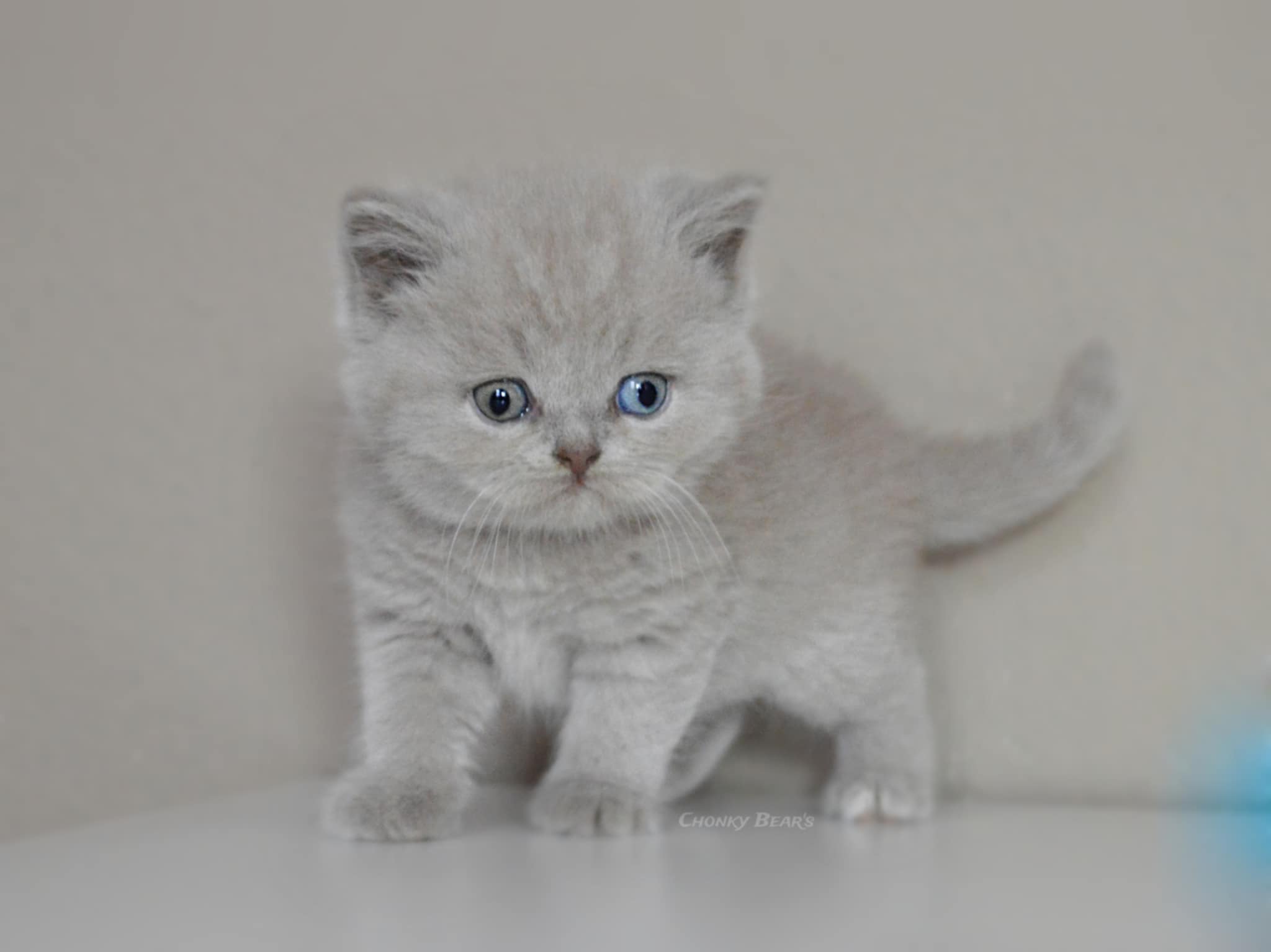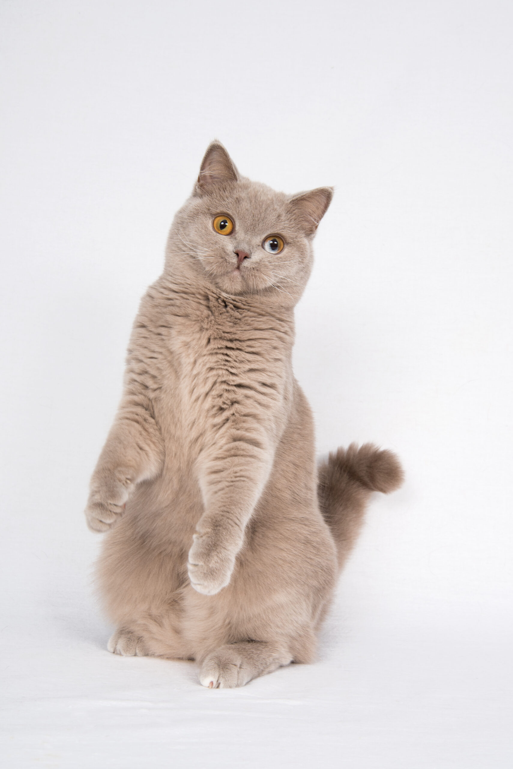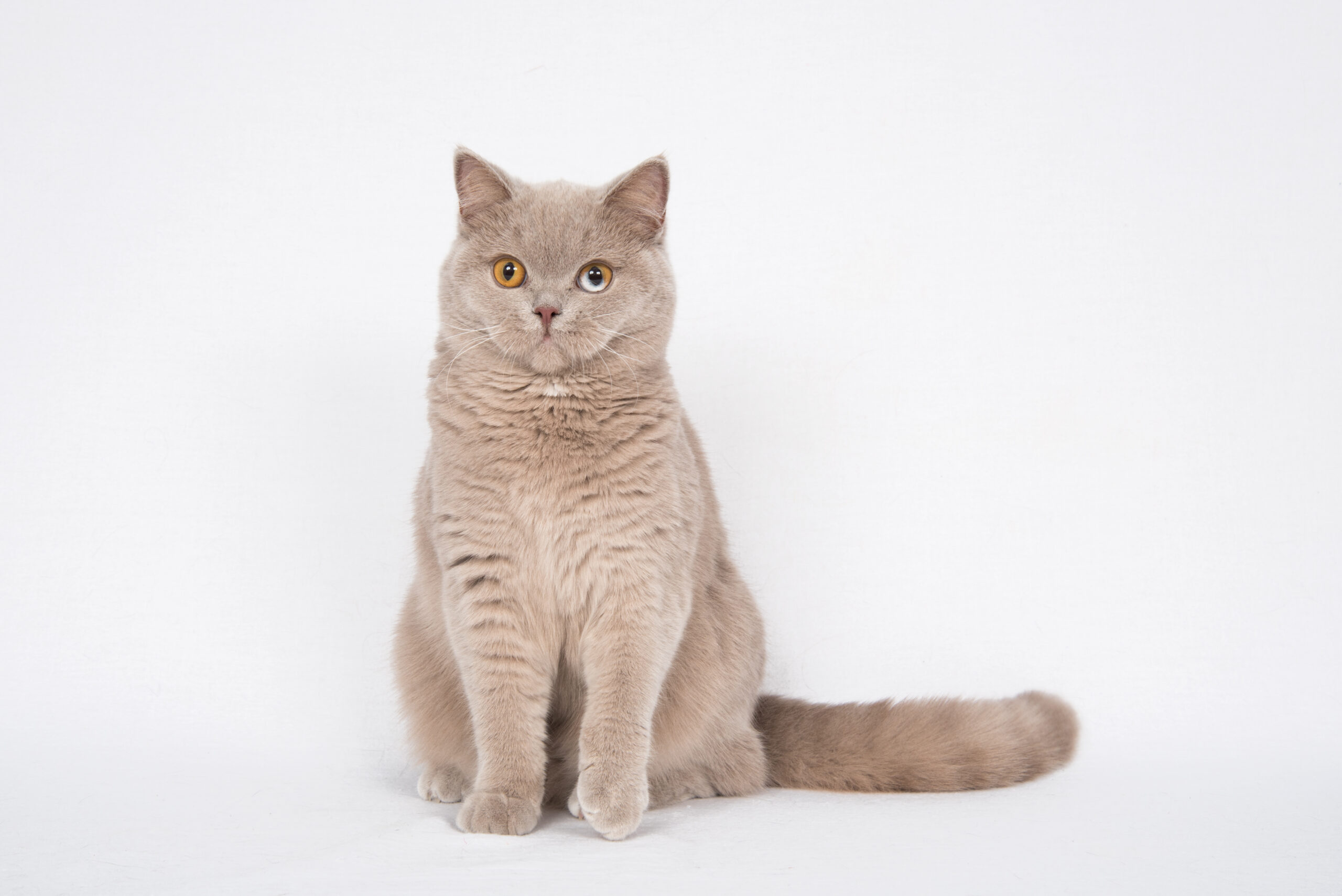 Fancy is een prachtige Britse Korthaar met een bijzondere uitstraling. Haar vacht heeft de kleur lilac, wat haar een zachte en verfijnde look geeft. Wat haar echter echt uniek maakt, zijn haar odd eyes: één oog is helder blauw en oranje en het andere oranje.