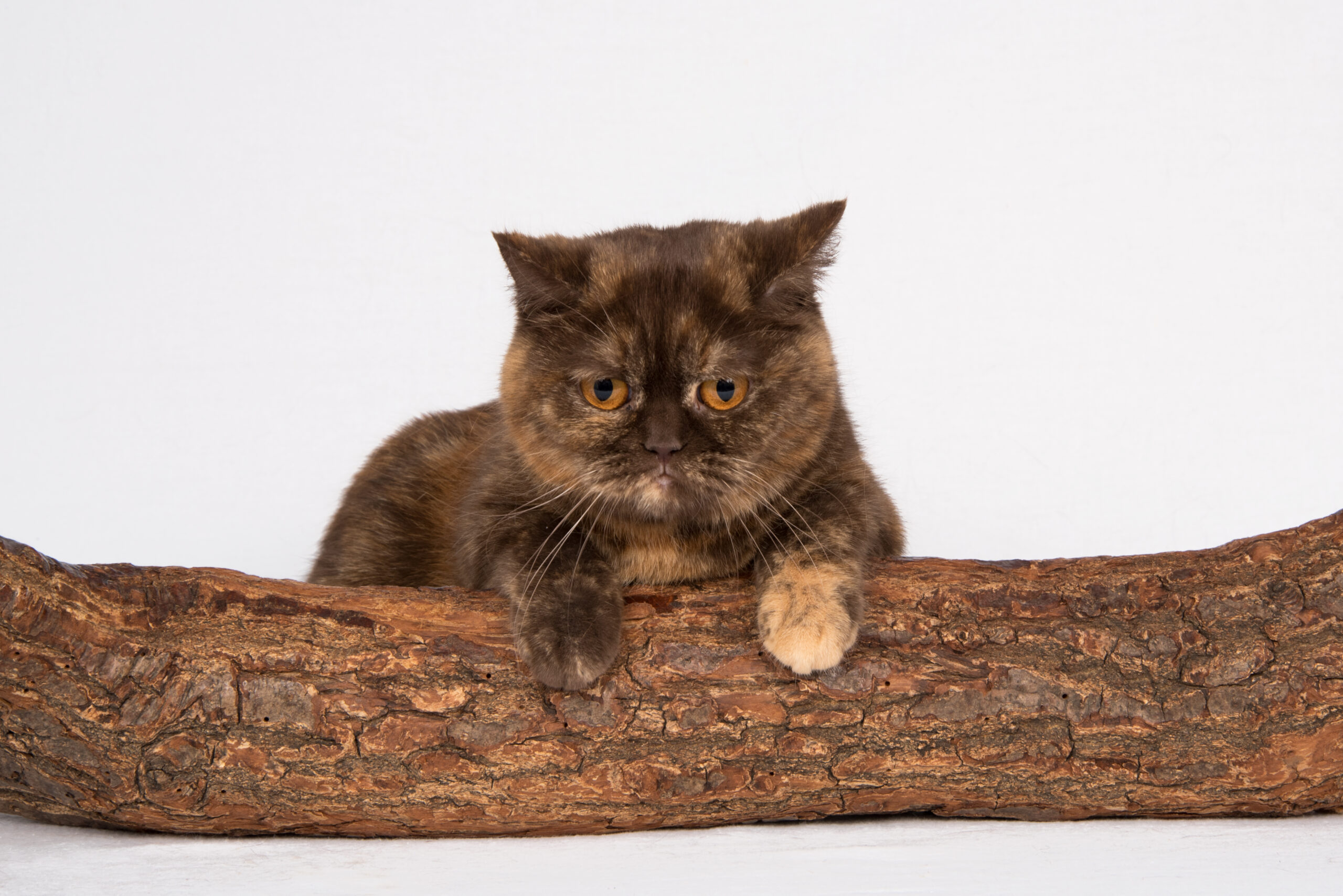 Eleonora is een schitterende chocolate tortie Brits Korthaar dame met een uitstraling die meteen betovert. Afkomstig uit Duitsland straalt ze raszuiver type uit: een zeer compacte bouw met een perfect rond hoofd en haar kenmerkende uilengezicht. Haar volle wangen en ronde hoofd geven haar die klassieke teddybeer-look die zo geliefd is bij het ras.
